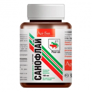 Перед массовой обработкой поголовья каждую серию Санофлая следует испытать на небольшой группе животных. При отсутсвии осложнений в течение суток приступают к обработке всего поголовья. Крупному рогатому скоту и лошадямСанофлайнаносят на кожу спины вдоль позвоночника от холки до крестца, в дозе 0,3 мл на 10 кг массы животного. При локализованном применении возможны ожоги. Обработку животных проводят в пастбищный период один раз в 4-6 недель, в зависимости от численности насекомых. Дойных коров следует обрабатывать сразу после дойки.